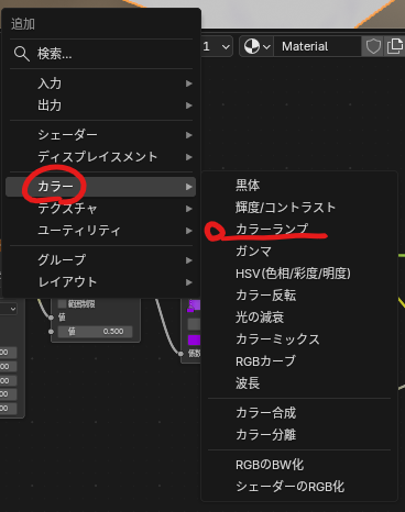 「shift」+A→カラー→カラーランプ