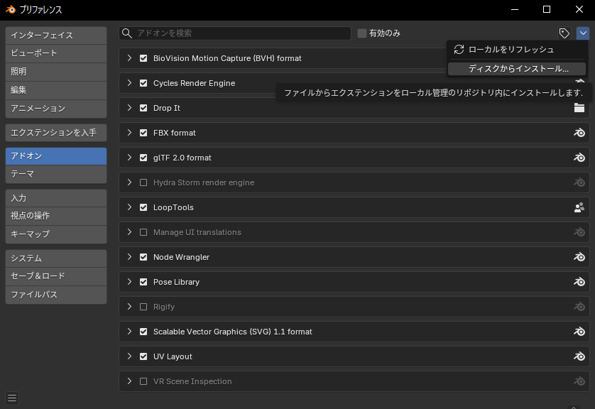 外部アドオンを入れる方法(ネットからアドオンをダウンロードして入れる)