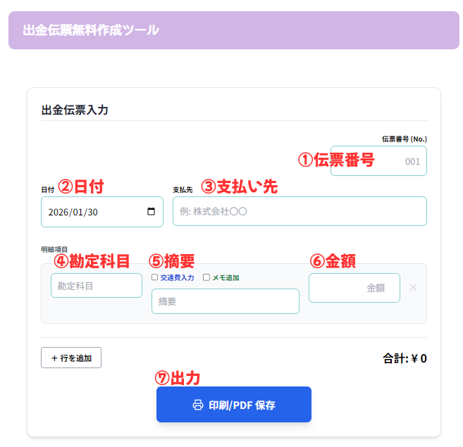 出金伝票無料作成ツールの使い方